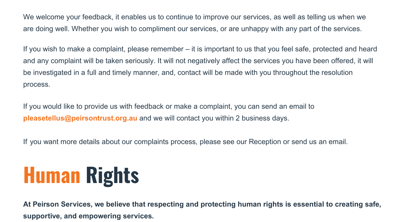 When accessing support from Peirson Services, you have rights and responsibilities.